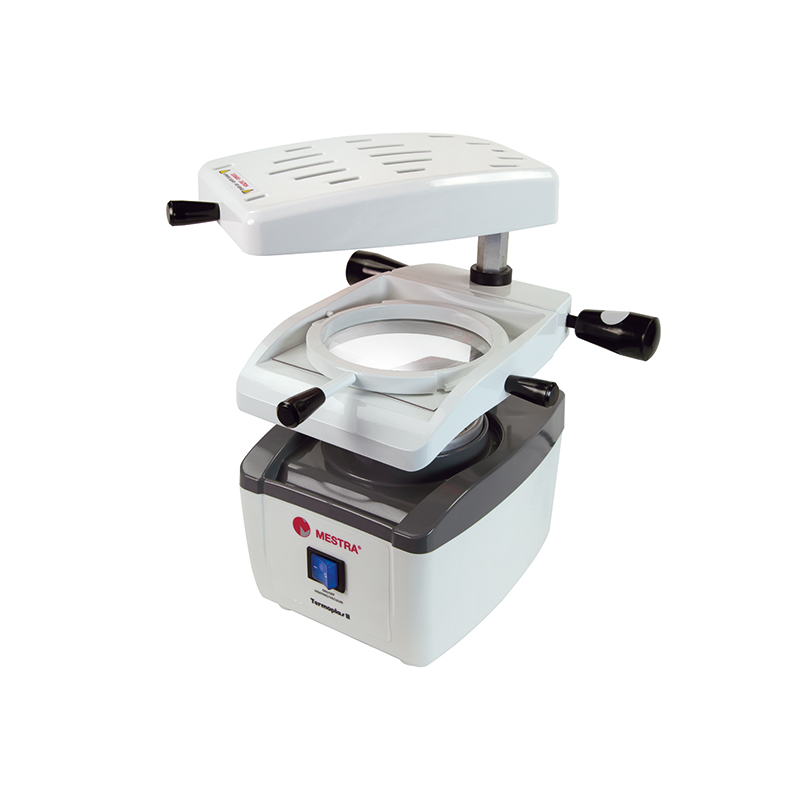 Appareil simple, pratique et au design moderne, conçu pour le thermoformage de plaques thermoplastiques dans les laboratoires dentaires.Fonctionnalités :Équipée d’un puissant moteur d’aspiration qui se déclenche automatiquement à l’abaissement du porte-plaques.Résistance en carbone assurant un chauffage progressif et uniforme du matériau.Compatible avec des plaques carrées au format standard (127 mm de côté).Caractéristiques techniques :Fonctionnement automatiséChauffage uniformeFormat de plaque : 127 x 127 mm (standard)