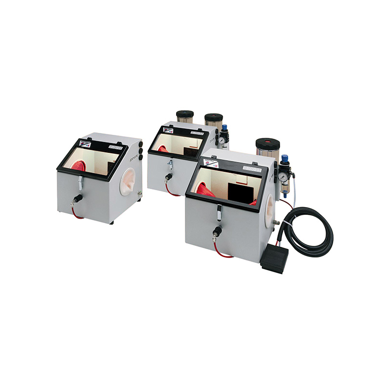 The Mestra T1 belongs to a family of compact and affordable sandblasters, perfect for basic laboratory tasks.Key Features:Fixed 3 mm nozzle blasting gun for precise and consistent performance.Sand recirculation system: improves efficiency and reduces waste.LED lighting inside the chamber for clear visibility while working.Compact dimensions and consistent design across the entire product line.A simple and reliable choice for everyday lab use.