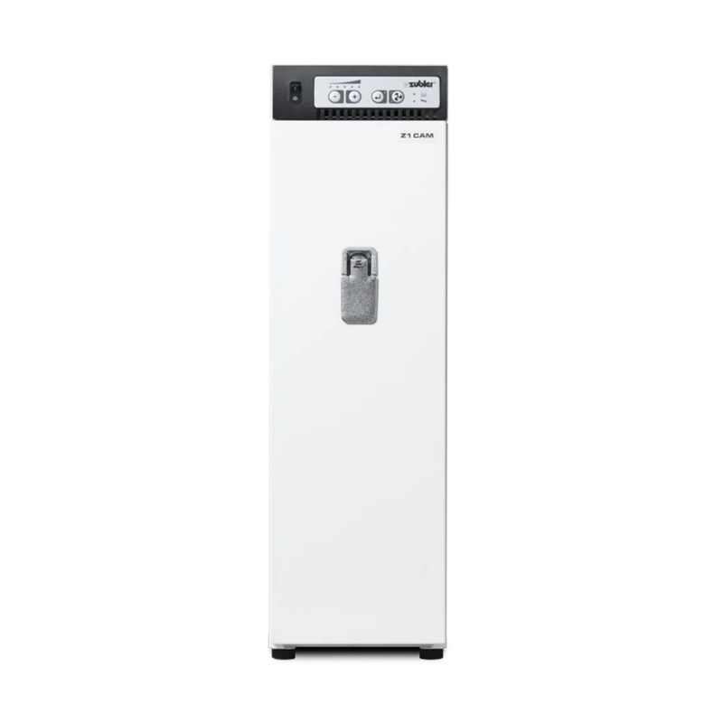 eatures and propertiesTechnical Data:Width: 200 mmHeight: 675 mmDepth: 590 mmWeight: 31 kgSuction Power: 700 WThroughput: 15-65 l/sNoise Level: 41-60 dB(A)Exhaust Air Connection Options:The model includes a diffuser limiting exhaust airflow to max. 1 m/s. Optional H14 or activated carbon filters, or external exhaust adapter available.Regulated Step Switch:Five suction levels, with the first four customizable. Smart control adapts suction to the filter's filling level. Fifth level provides temporary maximum power.Motor Technology:Brushless, electronically controlled motor. Maintenance-free for over 5000 hours. Ideal for continuous operation. Low noise due to effective insulation.IFA Certification – DGUV:Conforms to DIN EN 60335-2-69 Appendix AA and GS-IFA-M020 requirements for dental labs.Zubler Extraction Technology App:Bluetooth connectivity for system insights, personalized settings, and remote maintenance.External Control Panel:Optional control module installable at eye level for comfortable use and instant status view.